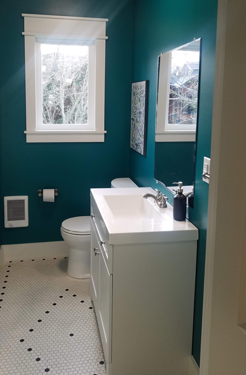 This bathroom had seen better days and needed a complete gut and remodel. The original 1920's penny tile was able to be retained and now part of a refreshed room.